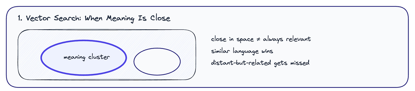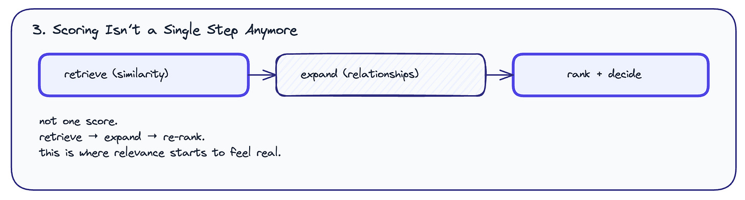 You start with similarity. Grab the top results. Then expand through relationships.