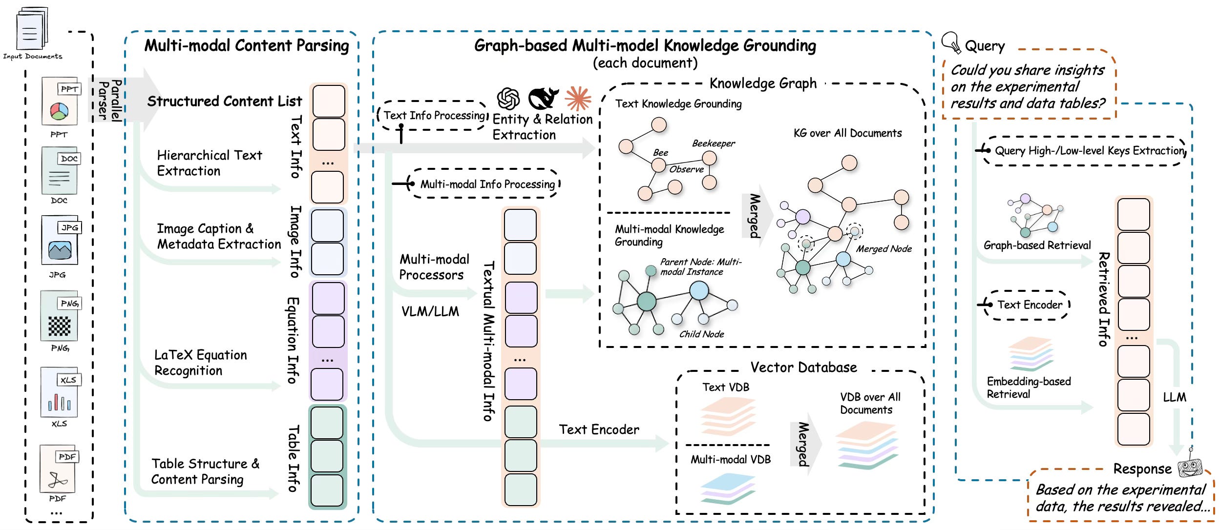 shape is being influenced by the RAG-Anything work from HKUDS. Their framework diagram helped me see the pipeline as a system, not a single retrieval trick.